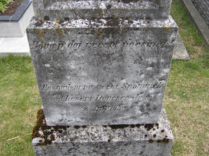 Keywords: Doncsec Julia, Stevanovci-Amerika.JPG en The grave of Júlia Doncsec dead in USA in Apátistvánfalva with prekmurian inscription hu Doncsec Júlia sírja Apátistvánfalván az Egyesült Államokban halt meg vend felirattal own User Doncsecz 2009 Cemetery in Apátistvánfalva Prekmurje Slovene inscriptions on crosses and tombs |