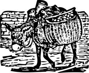 Keywords: donkey carrying baskets load burro ass mammal animal transporting transport basket livestock