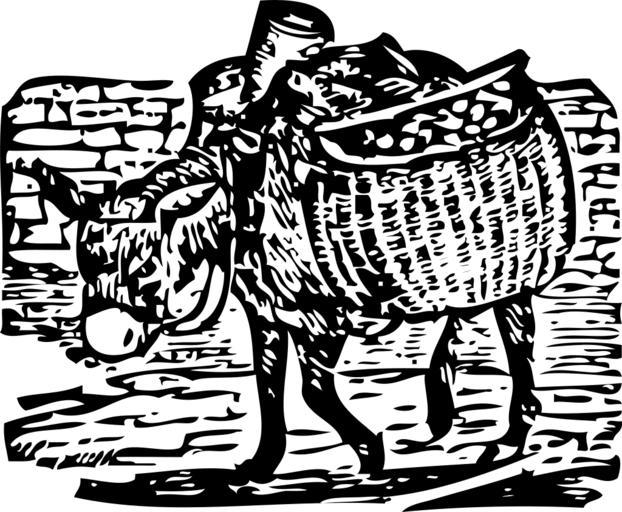 View Original:donkey-carrying-baskets-load-burro-47627.svg (622x512)