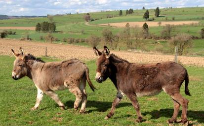 Keywords: donkey domestic donkey equus asinus asinus animal stand go dark brown brown for two last animal perissodactyla curious on pasture nature