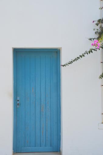 Keywords: door blue white greece home blue white flower