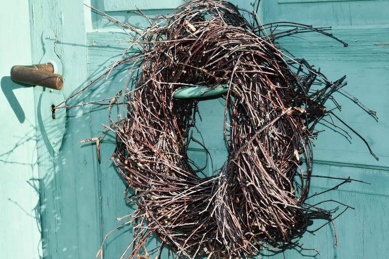 Keywords: door door wreath old building decoration idyll home entrance door wood