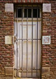 Keywords: door grid input old building metal facade iron railings stone