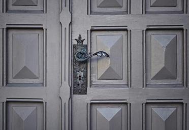 Keywords: door handle keyhole wooden metal decoration home entrance house front closed
