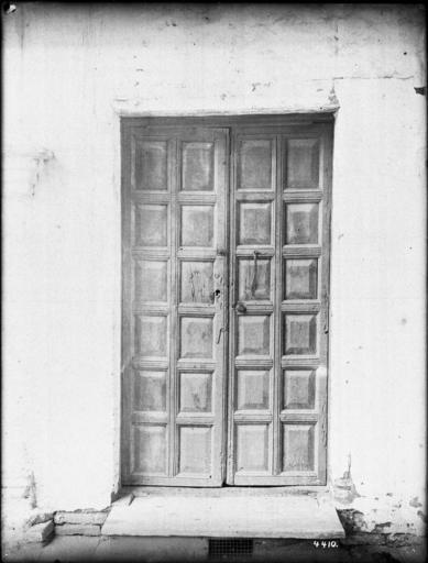 | Keywords: Door in front corridor at Mission San Juan Capistrano, California, ca.1908 (CHS-4410).jpg en <br> Door in front corridor at Mission San Juan Capistrano California ca 1908 Photograph of a door in front corridor at Mission San Juan Capistrano California ca 1908 The walls have loose stucco and several cracks The double wooden door has one knob and is divided into 24 small square panels of equal size There is a raised stoop at the foot of the door A coarse mesh covers a small square drain under the stoop A latch hangs loose from one of the doors over the knob Call number CHS-4410 Legacy record ID chs-m16760; USC-1-1-1-14088 Photographer James George Wharton Filename CHS-4410 Coverage date circa 1908 Part of collection California Historical Society Collection 1860-1960 Type images Geographic subject city or populated place San Juan Capistrano; San Juan Capistrano Repository name USC Libraries Special Collections Accession number 4410 Microfiche number 1-137-69 Archival file chs_Volume96/CHS-4410 tiff Part of subcollection Title Insurance and Trust and C C Pierce Photography Collection 1860-1960 Repository address Doheny Memorial Library Los Angeles CA 90089-0189 Geographic subject country USA Format aacr2 2 photographs glass photonegative photoprint b w ; 22 x 17 cm Rights Digitally reproduced by the USC Digital Library; From the California Historical Society Collection at the University of Southern California Subject adlf religious facilities Project USC Repository email specol usc edu Contributing entity California Historical Society Date created circa 1908 Publisher of the digital version University of Southern California Libraries Format aat photographic prints; photographs Geographic subject state California Subject file heading Missions -- Mission San Juan Capistrano Format glass plate negatives Access conditions Send requests to address or e-mail given Phone 213 821-2366; fax 213 740-2343 Geographic subject county Orange Subject lcsh Missions Spanish Subject San Juan Capistrano Mission circa 1908 date created James George Wharton http //digitallibrary usc edu/cdm/ref/collection/p15799coll65/id/16693 PD-old-70-1923 Images from USC Digital Library uploaded by Fæ California Historical Society Collection 1860-1960 Glass plate negatives Photographs by George Wharton James Mission San Juan Capistrano |