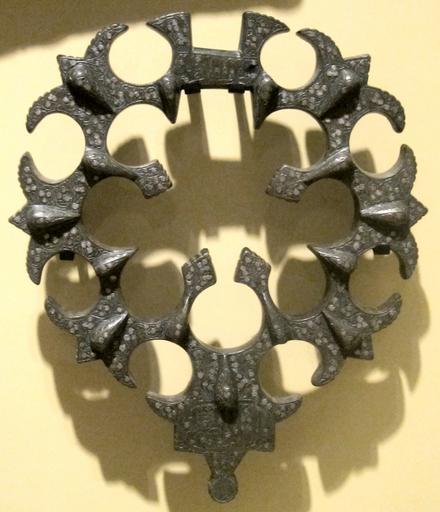 | View Original: | Door knocker from Cairo, Egypt, c. 1880, copper alloy and silver, HAA.JPG (2220x2585) | |||