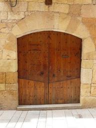 Keywords: door wood wooden decorative entrance doorway spain old half round half-timbered frame special worn rare bricks panels architecture