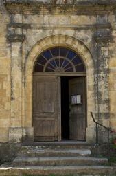 Keywords: dordogne france church building architecture old historic landmark door doorway wooden entrance arch arched stone