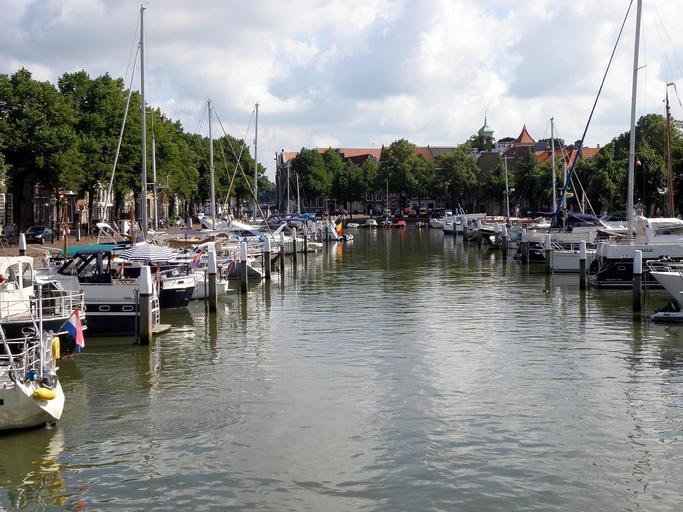 Keywords: dordrecht netherlands city urban buildings architecture skyline boats ships pier dock trees cities summer spring outside sky clouds bay canal waterway reflections