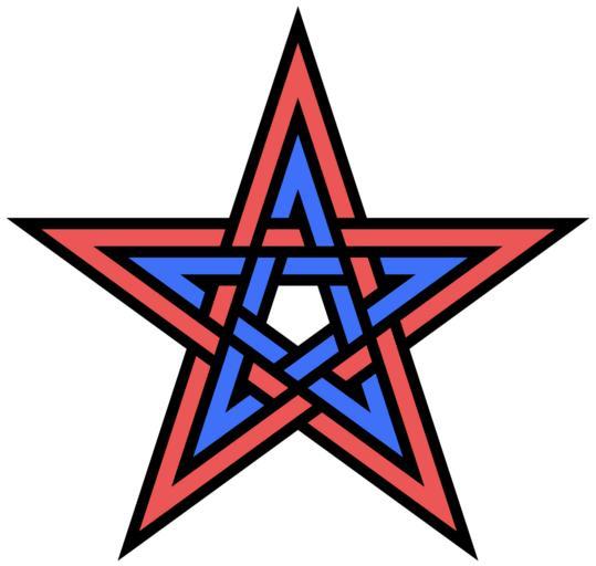 Keywords: Double-interlaced-pentagram.svg Two mutually interlaced concentric pentagrams Self-made graphic own 2010 AnonMoos 2 component links Pentagrams Decorative knots 20 crossing number knots and links Outline knots and links Generated by PostScript |