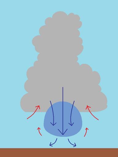 Keywords: Downburst 2.png en Structure of cumulonimbus cloud and system of downburst Blue zone cold air mesohigh ja 積乱雲の構 と ウンバーストのメカニズム 色の部分 冷たい空気(メソハイ) Own own work 2009-10-17 Microburst