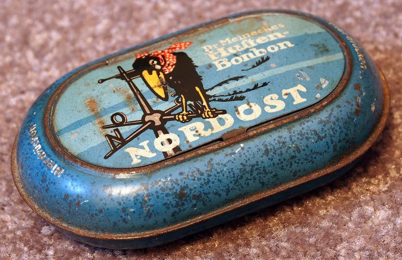 Keywords: Dr Meineckes Husten Bonbon NORDOST blikje, foto2.JPG Very old product that is not produced and not sold any more Note that some tins may look the same but when looked for carefully there are some slight differences own 2013-12-22 13 52 18 Alf van Beem CC-Zero Trademarked Cough drop tins |