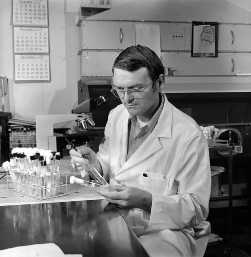 | Keywords: Dr Michael McGinnis 1973.jpg This historic 1973 image depicted Dr Michael McGinnis seated in his mycology laboratory while he was in the process of transferring a culture In 1980 Dr McGinnis authored a text entitled Laboratory Handbook of Medical Mycology which became a seminal text for the development of the future of mycological study An expert in taxonomic classification Dr McGinnis defined the clinical nomenclature identifying nine fungal species pathogenic towards humans from the genera Exophiala Phialophora and Wangiella High Resolution Right click here and select Save Target As for hi-resolution image 22 84 MB Content Providers s CDC/ Dr M M Brooke Creation Date 1973 Photo Credit Links Categories CDC Organization MeSH Biological Sciences Biological Sciences Biochemistry Biology Microbiology Mycology Physical Sciences Natural Sciences Biological Sciences Biochemistry Biology Microbiology Mycology Chemistry Biochemistry Chemistry Clinical Copyright Restrictions None - This image is in the public domain and thus free of any copyright restrictions As a matter of courtesy we request that the content provider be credited and notified in any public or private usage of this image CDC PHIL image library ID 12049 CDC/ Dr M M Brooke 1973 Scientists from the United States PD-USGov Sitting people Sitting leaning forward |