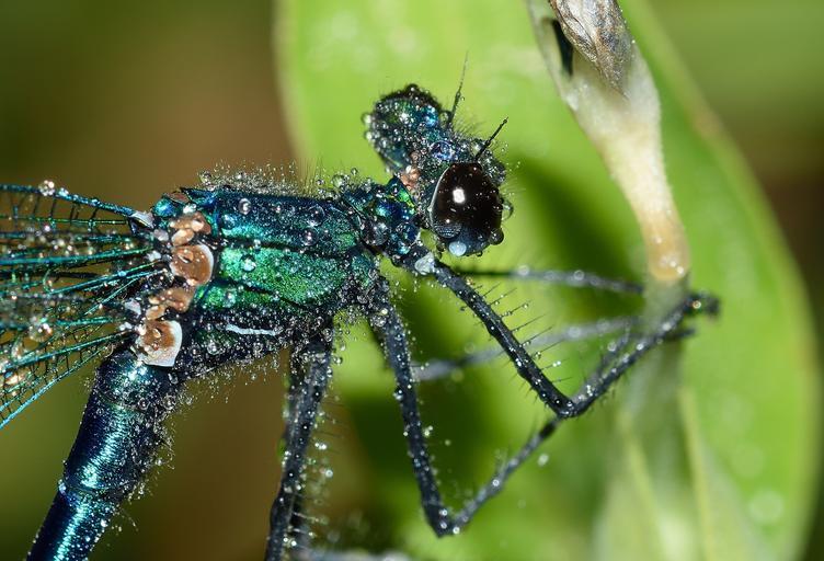 Keywords: dragonflies maid calopteryx splendens rain macro