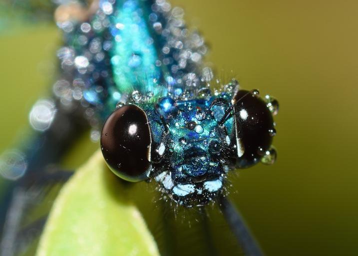 Keywords: dragonflies maid calopteryx splendens rain macro