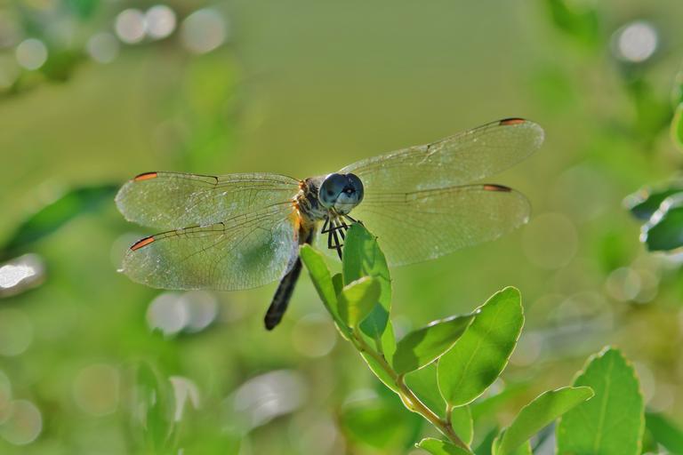Keywords: dragonfly insect winged insect flying insect wings close up leaves leaf biology entomology arthropod creature animal bug wildlife nature bokeh odonata anisoptera