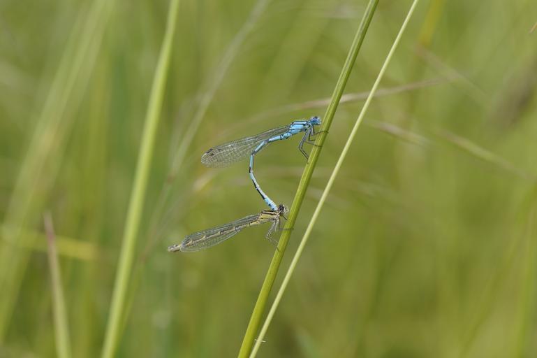 Keywords: dragonfly males insect small blue bins dragonfly reed wetland wetlands fauna pairing multiplication pair female