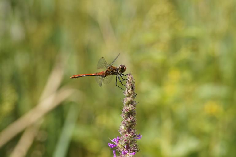 Keywords: dragonfly red red dragonfly close macro flight insect insect wing nature animal predator summer fly filigree blood-red flora wetland wetlands near shore pond lake bank moist