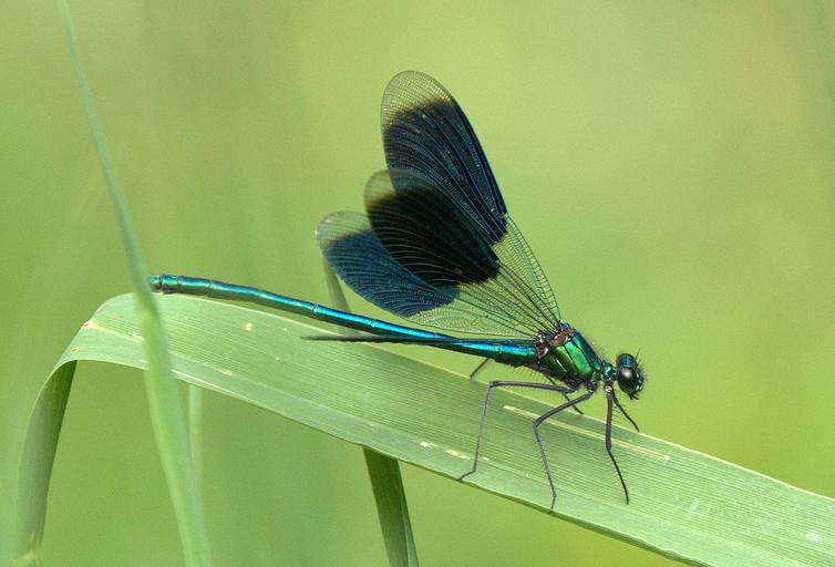 Keywords: dragonfly shiny insect close wing-smooth leaf transparent shine through light detail photo structure nature rest green meadow grass