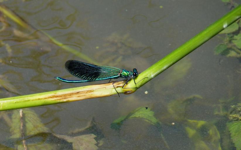 Keywords: dragonfly wing animal fly eyes rest blue river insect nature bank