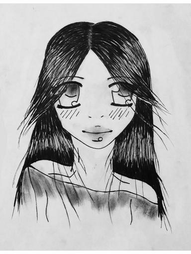 Keywords: drawing image painted painting manga girl eyes face jumper long hair pouty lips sweet kindchenschema mouth skin portrait woman nose beautiful look doll stylistically pretty beauty pupil shoulder