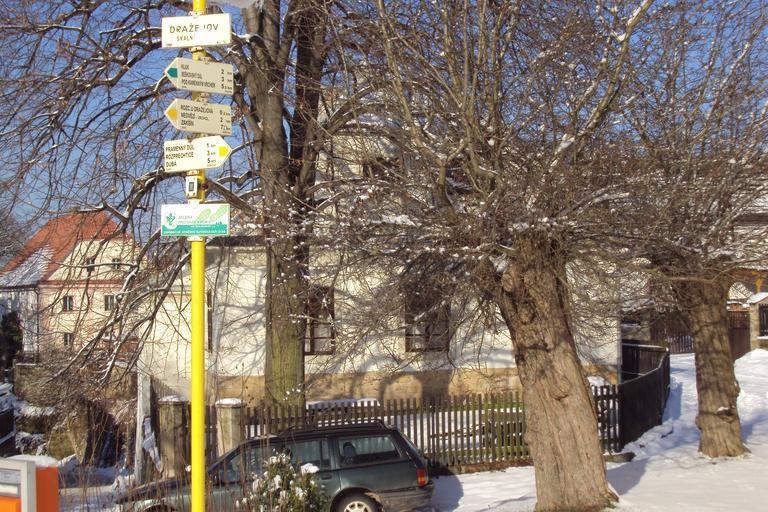 Keywords: Dražejov rozcestník.jpg cs Rozcestník u kaple ve středu Dražejova own Zákupák 2011-01-29 Dražejov Dubá Hiking and footpath fingerposts in Dubá