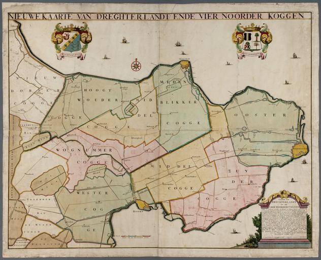 | Keywords: map drawing sketch cartoon "Nieuwe kaarte van Dregterlandt ende vier Noorder Koggen". Linksboven het wapen van Drechterland, rechtsboven dat van de vier Noorder Koggen. Opgemeten in 1735 en 1736 door Pieter Straat en Jan Harge, geadmitteerde landmeters te Callantsoog. Vervaardiger: Leth, H. de Catalogusnummer: PR 1007000 "Nieuwe kaarte van Dregterlandt ende vier Noorder Koggen". Linksboven het wapen van Drechterland, rechtsboven dat van de vier Noorder Koggen. Opgemeten in 1735 en 1736 door Pieter Straat en Jan Harge, geadmitteerde landmeters te Callantsoog. Vervaardiger: Leth, H. de Catalogusnummer: PR 1007000 |