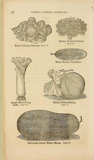 | Keywords: Dreer's garden calendar 1868 (16435430702).jpg IS <br> DREEil S GARDEN CALENDAR <br> c <br> Early Cabbaje Lettuce Page 17 <br> Boston Curled Lettuce <br> Page 31 <br> <br> Large Musselburg <br> Leek Page 16 <br> Early rr -i - O/ i- mbsr <br> Ifetted Citron Melon <br> Page 17 <br> Mountain Sweet Water Melon Page 19 43808847 149128 77933 Page 18 Text http //www biodiversitylibrary org/page/43808847 1868 10 5962/bhl title 77933 Henry A Dreer Firm ; Henry G Gilbert Nursery and Seed Trade Catalog Collection Biodiversity Heritage Library Dreer's garden calendar 1868 Garden Stories Catalogs Flowers Gardening Henry A Dreer Firm Nursery stock Seeds U S Department of Agriculture National Agricultural Library bhl page 43808847 dc identifier http //biodiversitylibrary org/page/43808847 bhlGardenStories Mountain sweet water melon Netted citron melon Large musselburg leek Early frame cucumber Boston curled lettuce Early cabbage lettuce BHLinbloom henry a dreer firm u s department of agriculture national agricultural library bhlgardenstories bhlinbloom Information field Flickr posted date ISOdate 2015-02-03 Check categories 2015 August 24 CC-BY-2 0 BioDivLibrary https //flickr com/photos/61021753 N02/16435430702 2015-08-24 06 50 21 cc-by-2 0 PD-old-70-1923 Dreer's garden calendar 1868 Photos uploaded from Flickr by Fæ using a script |