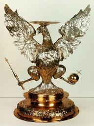 | Keywords: Drentwett White Eagle of Poland.jpg Artwork Creator Abraham Drentwett I and Creator Heinrich Mannlich Abraham I Drentwett eagle Heinrich Mannlich base 1665-1666 gilt silver cm 89 Institution Moscow Kremlin Armoury accession number MZ 191 object history ca 1665 commission John II Casimir Vasa Warsaw ProvenanceEvent 1671 gift Alexis I of Russia Moscow Michael Korybut Wiśniowiecki Warsaw credit line The flat plate at the top of the eagle's head served as a stand for the royal crown own See below cc-zero DEFAULTSORT 1665-1666; White Eagle of Poland White Eagle of Poland by Abraham Drentwett I |