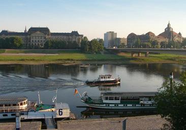 Keywords: Dresden-Elbe02.jpg Die Elbe in Dresden Sachsen Deutschland Im Bild Der Schiffsanleger Terrassenufer im Hintergrund das Sächsische Finanzministerium links die Sächsische Staatskanzlei rechts und die Carolabrücke The Elbe River in Dresden Saxony Germany View to the Saxon treasury Saxon state chancellery and Carola Bridge own Nikater 2005-09-04 Own work all rights released Public domain 51 053150 13 744474 Heading NE Elbe in Dresden |