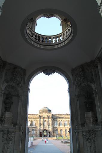 Keywords: dresden germany zwinger palace buildings architecture scenic sky clouds outside arch arched view