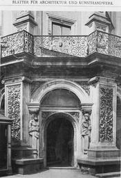 | Keywords: Dresden, Schloss, nordwestlicher Treppenturm im Schlosshof, 2. Haupteingang, Kaspar Voigt von Wierandt (Baumeister) + Juan Maria Padovano genannt "il Mosca" (tätig um 1515-1530 in Padua und Venedig) und Bastian Stentz (Bildhauer).jpg de Dresden Blätter für Architektur und Kunsthandwerk 1904 author 1904 public domain PD-old Großer Schlosshof Dresden Giovanni Maria Padovano Blätter für Architektur und Kunsthandwerk | ||||
