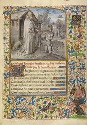 Keywords: Dreux Jean (Flemish, active 1445 - about 1446) - A Young Knight in Armor Kneeling in Prayer before Saint Anthony - Google Art Project.jpg Tempera colors gold leaf gold paint and ink on parchment http //www getty edu/legal/copyright html special url_id AwEXk1ua2C1jlg PD-old-100 MS LUDWIG IX 8 Getty museum - Arenberg Hours Google Art Project works by Dreux Jean Miniatures of Saint Anthony the Great Medieval miniatures of birds Coats of arms in medieval miniature Kneeling in prayer in art Tau cross and bell of St Anthony |