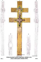 | Keywords: Drevnosti RG v1 ill026.jpg ru Д евности Российского госуда ства Antiquities of Russian country 1846 1853 Т 1 Иллюст ато Солнцев Фёдо Г иго ьевич Воздвизальный к ест епископа Антония 1212 г х анится в новго одском Софийском собо е Изоб аженный на эстампе под 25 к ест в половину уменьшенный п отив нату альной своей величины п инадлежит к числу воздвизальных кои возносимы были в собо ах и некото ых монасты ях на п аздник Воздвижения Честнаго и Животво ящаго К еста Различаясь местом и назначением своим от п естольных благословящих возлагаемых на п естоле; он х анился или в изнице или поставляем был в алта е на го нем месте Антониев к ест х анящийся в новго одском Софийском собо е сходен с полоцким св Евф осинии и с остовским Ав амиевым; он шестиконечный де евянный обложенный басменным золоченым се еб ом В шести клеймах на лицевой сто оне вычеканены изоб ажения Знамения Бого одицы Господа Вседе жителя двух хе увимов и св Иоанна Богослова ежду ними два к еста один мусийный восьмиконечный с аспятым Х истом ок уженный ликами Богомате и и св Иоанна Богослова или П едтечи а д угой с частицей Животво ящаго Д ева а боках к еста вычеканено о агиос Пет ос о агиос Павълос о агиос IBо о агиос Семьонъ и след надпись Господи помози абоu своїемu Антонu А хїепископu овго одьскuмu давшюмu к естъ Свmтой Софии Великий овго од изб ал Антония в 1211 г а хиепископом но че ез 8 лет изгнал его; потом вместе с ит офаном его п едшественником п едставил на суд мит ополиту Все оссийскому кото ый утве див ит офана в овго оде на Владычнем п естоле дал Антонию кафед у в Пе емышле После А сения овго од опять вызвал Антония на а хиепископию с кото ой он потом сошел в Хутынский монасты ь где и кончил жизнь свою и из исто ии ни из надписи не видно когда и по какому случаю соо ужен Владыкой овго одским этот к ест но по д евности более чем пятивековой по месту соо ужения и по лицу соо удителя этот надписанный памятник начала XIII в п инадлежит к любопытнейшим нашим д евностям Вместе с ним в изнице Софийского собо а находится т и панагии две а хиепископов новго одских и одна папская В С се еб яная складная с изоб ажением аспятия И Х а на д угой Спасителя E F се еб яная ук ашенная финифтью с об азом Святителя иколая H I к ест золотой с т емя п одолговатыми сквозными яхонтами на кото ых вы езано ельефом Распятие Иисуса Х иста с п едстоящими ему Богомате ью и Иоанном Богословом а т ех концах к еста изоб ажены т и пчелы по-видимому намекающие на слова Псалма CXVII 12 «Обыдоша мя яко пчелы сот» а с едок естии об атной сто оны солнце коего т ойственные лучи выступают и на д угую сто ону П и подножии к еста по снимку г Солнцева читаем надпись Urb VIII P M т е Urbanus VIII Pontifex Maximus о «Исто ическое описание Святыни овго одской» СПб 1848 г и новго одские «Губе нские Ведомости» 1848 г 9 ошибочно п иписывают этот к ест У бану IX и У бану XI Импе ат ицей Екате иной II это св ук ашение пожаловано было ит ополиту овго одскому и С -Пете бу гскому Гав иилу Пет ову а от него поступило в изницу Софийского собо а 1846 1853 http //www runiverse ru/bookreader/book403605/ page/61/mode/1up Солнцев Фёдо Г иго ьевич PD-Art Antiquities of Russian country - Volume I Files uploaded by Shakko from various sources Uploaded with UploadWizard Saint Sophia Cathedral in Novgorod objects Altar crucifixes in Russia Anthony of Novgorod 1212 in Russia Gavriil Petrov |