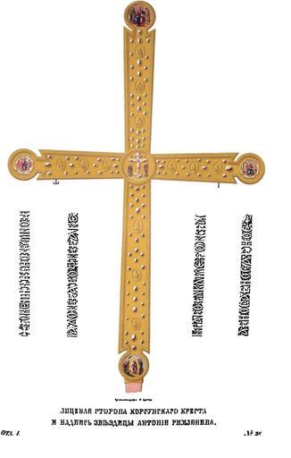 | Keywords: Drevnosti RG v1 ill029.jpg ru Д евности Российского госуда ства Antiquities of Russian country 1846 1853 Т 1 Иллюст ато Солнцев Фёдо Г иго ьевич Ста инные Ко сунские к есты и звездица Антония Римлянина Ко сунскими к естами называются зап естольные т и к еста в алта е московского Успенского собо а Один из них четы ехконечный обитый позолоченными се еб яными листами; лицевая сто она усеяна самоцветными каменьями и клеймами с об онными изоб ажениями азных святых а се едине и по концам в к угах наведены финифтью Распятие Деисус Благовещение и Воск есение а об атной сто оне поле ук ашено звездами из х усталей; на се едине и на концах в клеймах чеканные изоб ажения господских п аздников В пе еписных книгах московского Успенского собо а ск епленных в 1627 г Симоновским а химанд итом Иосифом впоследствии пат иа хом об этом памятнике благочестия сказано «За п естолом же к ест большой Ко сунский обложен се еб ом в пяти местех писаны господские п аздники мусиею на золотых цках; в нем же в гнездех сто семь х усталей» Д угие два к еста четы ехконечные из го ного х усталя ск епленные се еб ом; они утве ждены на д евках для ношения в к естных ходах а этих священных памятниках нет надписей кои бы свидетельствовали нам об их местности и д евности но п едание гласит что они пе енесены п осветителем России Владими ом I в столичный г ад Киев из поко енной им Ко суни оттуда пе ешли во Владими и потом в оскву О пе вом к есте свидетельствует книга Жезл 1655 г что он «п ед агоценный окладом неоцененный об азом д евностью п ечестный именуемый Ко сунский алта ь Господень яко солнце п освещает в собо ном х аме в мате и всех це квей» В 1812 г святыни сии не были вывозимы из осквы 1846 1853 http //www runiverse ru/bookreader/book403605/ page/61/mode/1up Солнцев Фёдо Г иго ьевич PD-Art Antiquities of Russian country - Volume I Files uploaded by Shakko from various sources Uploaded with UploadWizard Korsun cross Objects of Assumption Cathedral in Moscow |