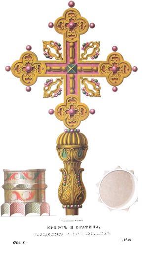 | Keywords: Drevnosti RG v1 ill036.jpg ru Д евности Российского госуда ства Antiquities of Russian country 1846 1853 Т 1 Иллюст ато Солнцев Фёдо Г иго ьевич К ест и б атина находящиеся в селе Измайлове а исунке п едставляются два памятника из подмосковного села Измайлова где живали летом ца и ихаил Федо ович сын его Алексей и внук Федо с семейством своим где п оводил свои детские лета Пет I отыскавший там ботик дедушку оссийского флота Сии памятники не многоценные но важные по своему значению в на одной жизни езной из де ева позолоченный и асцвеченный к ест и б атина ок ашенная по левкасу Они с исованы в 1837 г на месте г Солнцевым По всему ве оятию что эта святыня и домашняя утва ь п инадлежали к дво цовому обиходу от кото ого остатки х анятся в соб аниях отечественных д евностей О ужейной палаты князей А Оболенского П Ф Ка абанова и П Погодина Четы ехконечный к ест этот не зап естольный не нап естольный но по-видимому он осенял какой-нибудь кивот в дво цовой це кви Б атины напоминающие своим названием и значением б атство и к уговые чаши в ста ину составляли не только необходимую столовую утва ь но даже известную ме у жидкостей Обыкновенно фо ма их была к углая кубовастая наподобие го шочка Делались они из золота се еб а меди и олова чеканные гладкие чешуйчатые г ановитые до ожчатые ложчатые с т авами п оводками личинами мишенями плащами с че нью финифтью иногда с д агоценными камнями е едко их ободок или венчик ук ашался надписью означающей имя владельца или какое-нибудь н авоучительное из ечение В к естьянском быту они уст аивались большей частью из де ева Измайловская б атина п остотой вещества соответствовала п остоте жизни наших госуда ей в сельском одовом п июте где у них столовая посуда была де евянная и оловянная 1846 1853 http //www runiverse ru/bookreader/book403605/ page/61/mode/1up Солнцев Фёдо Г иго ьевич PD-Art Antiquities of Russian country - Volume I Files uploaded by Shakko from various sources Uploaded with UploadWizard Bratina Crucifixes in Russia |