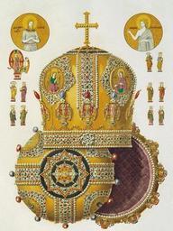 | Keywords: Drevnosti RG v1 ill091a - Mitra Nikona.jpg ит а пат иа ха икона 1605 1681 пода енная боя ином икитою Ивановичем Романовым В московской Пат иа шей изнице мит ы пе вого и шестого пат иа хов Все оссийских Иова и икона напоминая нам лица замечательные в исто ии ие а хии и госуда ства и отчасти сходные своим ж ебием в то же в емя об ащают внимание на п оисхождение пе воначальное знаменование и введение сего главного ие а хического отличия ит а есть слово г еческое означающее головную повязку увясло наглавие кида Так как она составляла отличительное ук ашение вообще иудейских пе восвященников а со в емени Давида и ца ей то в под ажание пе вым а хипасты и х истианской це кви усвоили себе подобное наглавие У пе восвященников на златой дщице ук ашавшей чело кида а изоб ажены были слова святыня Господня замененные на мит е а хие ейской ликами Спасителя Богомате и и д угих святых В век Иисуса Х иста по свидетельству Иосифа Флавия ж ецы из племени маккавеев бывшие вместе и ца ями к мит е п исоединили т ойную ко ону Итак по пе воначальному п оисхождению мит а составляла главную утва ь ца ей и пе восвященников как символ помазания и власти Це ковь х истианская не едко об ащающая внешнее вещественное в символы духовного сообщила мит е высокое значение славы Господа и власти данной от него служителям святилища посему-то Евсевий называет ее венцем славы Вселенский святитель Иоанн Златоуст в похвале Евангелию внушает укополагаемому епископу что «п инятие венца знаменует Евангелие что хотя он всем глава и над всеми имеет де жаву но и сам состоит под законом» Пе вое упот ебление мит святительских вст ечается нам в пе венствующей це кви По свидетельству Епифания и Евсевия апостолы св Иаков б ат Господень и евангелист Иоанн Богослов в знак духовного помазания носили на своем наглавии дщицу злату Это подтве ждается Деяниями Константинопольского Собо а в IX в п отив Фотия где между п очим сказано что пат иа х Ие усалимский Феодосий послал в да к Ца ьг адскому пат иа ху Игнатию с поди ом и на амником мит у св Иакова б ата Господня Этот же самый Феодосий утве ждает что п едместники его пат иа хи и он сам возлагали себе на главу мит у когда им надлежало входить в святилище для богослужения По п име у св апостолов и вселенские святители ук ашались кида ом; ибо св Г иго ий азиансин называет кида ом то наглавие или увясло кото ое он носил; вп очем он не изъяснил нам какую оно имело фигу у и упот еблялось ли п очими епископами В наших отечественных летописях упомянуто о шапке Иоанна Златоуста п ивезенной в оскву в 1558 г Ю ьевским а химанд итом8 До азделения це кви на Восточную и Западную и впоследствии известно было в имско-католической ие а хии упот ебление мит кои до Лионского Собо а в 1249 г служили отличием для ка диналов Во в емена же пат иа ха Вальсамона в XII в как он сам свидетельствует один только пат иа х Александ ийский надевал на себя мит у в служении П ичиной сему он полагает то что когда св Ки илл пат иа х Александ ийский п едседательствовал на III Вселенском Собо е за Целестина имского пат иа ха тогда возложил на главу свою золотую мит у какую носили имские пат иа хи по п аву данному св Сильвест у Константином Великим о видно что постоянное упот ебление мит ы в то в емя еще не было узаконено ибо по словам Вальсамона незадолго до него даже один ха тофилакс Константинопольской це кви над