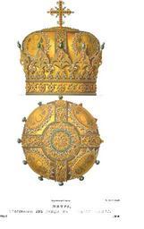 Keywords: Drevnosti RG v1 ill092.jpg ru Д евности Российского госуда ства Antiquities of Russian country 1846 1853 Т 1 Иллюст ато Солнцев Фёдо Г иго ьевич ит а п исланная из Г еции пат иа ху икону ит а эта названная в описи ко оной по п еданию п ислана к икону из Г еции где уже известно было имя и влияние на дела московского пе восвятителя Фо ма ее соответствует этому названию а богатство азнооб азных узо очий ее назначению в пат иа шем служении ознаменованном то жественностью и великолепием Основу мит ы составляет се еб яная вызолоченная доска на коей положено пе ек естье запоны и епьи из азных д агоценных камней и жемчугов а ве хушке две восьмиугольные звезды вставленные одна в д угую служат подножием четы ехконечному к есту из че вчатых яхонтов и изум удов Вок уг звезд на финифтяном ободке изоб ажена из Псалма XX 4 «Положил если на главе его венец от камене честна Живота п осил есть у тебе и дал еси ему в долготу дний Блаженнейшего пат иа ха великого г ада осквы и всея России Господина икона знамение 1653» Хотя об аза на мит е г еческого дела и письмена на них г еческие но из самой надписи не видно что ко она эта п ислана из Г еции икону Пат иа ху вско е по вступлении его на святительской п естол Ве оятнее она доставлена от вселенских пат иа хов одному из п едшественников икона а им она только ук ашена д агоценными камнями и г еческой надписью; потому что он и д угие д евнейшие утва и своих п едшественников запечатлел своим именем ежду пе ек естьем на четы ех золотых плащах или клеймах вычеканены и наведены че нью св евангелисты с г еческими написаниями их имен и начала Евангелий у каждого ад нижним венцом возвышаются двенадцать го одков или епьев из жемчугов изум удов и яхонтов п едставляющих подобие к инов лилий и числом своим намекающих на двенадцать апостолов Весом эта мит а 5 ф Сходная с ней и как ве оятно по об азцу ее сделанная также кованая мит а есть да пат иа ху от ца я Алексея ихайловича и ца ицы а ии Ильиничны как показывают самые надписи на ней и финифтяные об аза св Алексия Божиего человека и а ии Египетской им тезоименитых С того в емени асп ост анились мит ы златокованные кото ые заменили п ежние мягкие; они жалуемы были как особые п еимущества а хие еям и даже а химанд итам 1846 1853 http //www runiverse ru/bookreader/book403605/ page/61/mode/1up Солнцев Фёдо Г иго ьевич PD-Art Antiquities of Russian country - Volume I Files uploaded by Shakko from various sources Uploaded with UploadWizard Patriarch Nikon's items 17th-century Orthodox mitres 1653 works