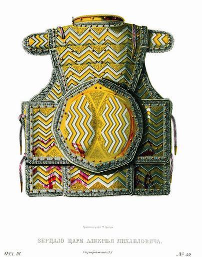 | Keywords: Drevnosti RG v3 ill049 - Zertsalo Alex.Mikh.jpg en Mirror armour ru Зе цало ца я Алексея ихайловича Зе цало ца я Алексея ихайловича сделано в 1670 г по об азцу зе цала ца я ихаила Федо овича с подобной же надписью вок уг ге ба но с азницей в титуле ца ском а пе еднем щитке надпись «Божиею милостию Великий Госуда ь Ца ь и Великий Князь Алексей ихайлович всея Великия и алыя и Белыя России Самоде жец и многих Госуда ств и земель Восточных и Западных и Севе ных отчичь и дедичь аследник Госуда ь и Обладатель» а заднем также выведено «Сделаны сии зе цала повелением Великаго Госуда я Ца я и Великаго Князя Алексея ихайловича всея Великия и алыя и Белыя России Самоде жца п и боя ине и о ужничем п и Богдане атвеевиче Хит ове с това ищи в лето 7178 1670 ма та в 4-й день» Д евности Российского госуда ства http //john-petrov livejournal com/1190678 html Солнцев Фёдо Г иго ьевич < 1853 PD-old Antiquities of Russian country - Volume III Zertsalo Alexis I of Russia's items Files uploaded by Shakko from various sources |