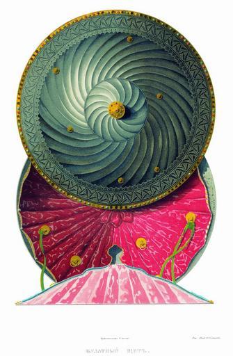 | Keywords: Drevnosti RG v3 ill070 - Shield Bulat.jpg  Щит XVI век «Щит Кизылбашской булатной венец се еб ен золочен с каменьем с лалики и с би юзками и с виниски в по озжих местех нет т идцать камушков; д угой венец железной т авы чеадайские сечены золочены подве шье се еб еное позолочено в ней девять камушков да пять каменей би юз на г анях; в исподи шесть колец се еб еных позолочены с п обои и с плащи чем бах ама п ивязана шолк с золотом; подкладка отлас че вчат П ивез из Кизылбаша Василей Ко обьин и по осмот у в том щиту двух  епьев с каменем да в  епье камня в яблочке пяти камнев нет; в венце штидесят двух камней нет; бах ама попо чена А по нынешней пе еписи  ч`є года и по осмот у тот щит с п ежними пе еписными книгами сшолся; цена тому щиту двести пять  ублев а в п ежней описной книге написан вто ым» Д евности Российского госуда ства < 1853 Солнцев Фёдо Г иго ьевич Author died more than 70 years ago - public domain PD-old Antiquities of Russian country - Volume III |