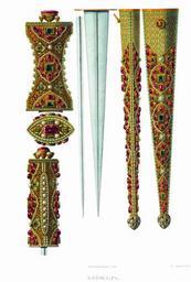 | Keywords: Drevnosti RG v3 ill104.jpg Кинжал Булатный кинжал в золотой оп аве изоб аженный на исунке 104 поступил в О ужейную палату в 1810 г из Рюсткаме ы п и Импе ато ском кабинете в Санкт-Пете бу ге Золотая укоять его и ножны заключают в себе большой яхонт в ве шине пятьдесят шесть больших и с едней величины изум удов двести девять яхонтов т идцать четы е жемчужины и све х того обойма ножен и обводы узо ов составлены из в езанной в золото би юзы Д евности Российского госуда ства http //john-petrov livejournal com/1190678 html Солнцев Фёдо Г иго ьевич < 1853 PD-old Antiquities of Russian country - Volume III Files uploaded by Shakko from various sources Knives of Russia |