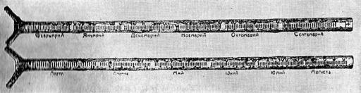 | Keywords: Drewniany kalendarz bułgarski.jpg ru Болга ский календа ь из ок естностей г Хасково pl Kijowaty drewniany kalendarz bułgarski z okolic m Chaskovo SbNU t 28 r 1914 tulił 5 podpisy dodane pod rysunkiem kalendarza brzmią w tłuma-czeniu na język polski luty styczeń grudzień listopad październik wrzesień i po stronie drugiej t/ n tu u dołu marzec kwiecień maj czerwiec lipiec sierpień 1914 http //slowianolubia blogspot ru/2013/08/pismo-sowian-czyli-jak-pisali html author other versions PD-old-70-1923 Uploaded with UploadWizard Slavic folk calendar in Bulgaria |