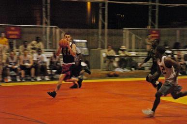 Keywords: Dribbling Down Court DVIDS164625.jpg en A Sailor assigned to USS Leyte Gulf passes the ball during a basketball game organized by service members at Combined Joint Task Force - Horn of Africa April 10 Sailors from the ship visited Camp Lemonier during a scheduled port call in Djibouti USS Leyte Gulf currently at sea to the Gulf of Aden conducted training exercises with Djiboutian navy while in port 2009-04-10 Petty Officer 2nd Class Kelly Ontiveros https //www dvidshub net/image/164625 090410-N-+++++-209 2009-04-13 02 56 CAMP LEMONNIER DJ PD-USGov-Military-Navy Combined Joint Task Force - Horn of Africa Camp Lemonnier Images from DoD uploaded by Fæ |