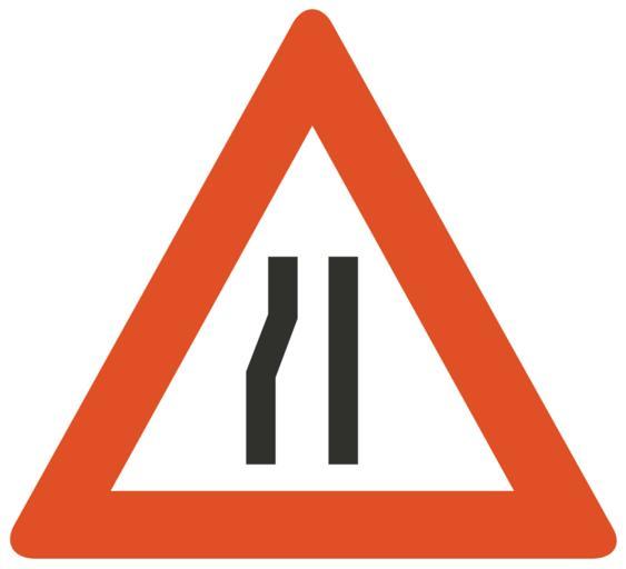 Keywords: drive car road information warning narrows left side sign symbol