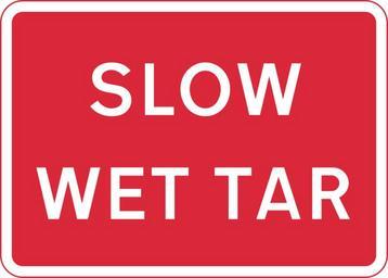 Keywords: drive car road wet tar warning hazard temporary slow sign symbol