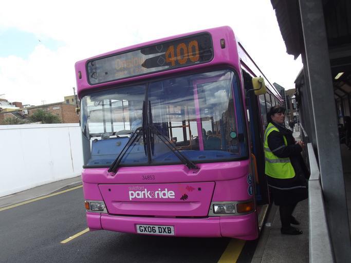 Keywords: bus driver guildford park ride surrey pink stagecoach 34853 gxo6dxb vehicle outdoor Photobombed by a driver Photobombed by a driver