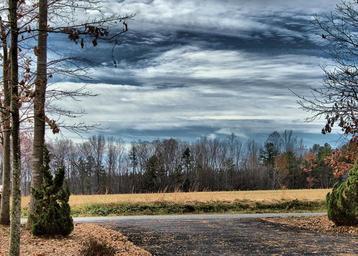 Keywords: driveway approach entrance vista view clouds cloudy sky evening