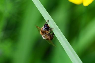 Keywords: drone honey bee male bee ready for take-off resting leaf buckfast strong insect wings antenna head close-up detail