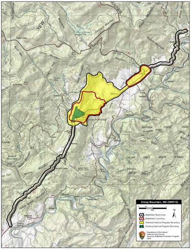| Keywords: Droop Mountain Battlefield West Virginia.jpg en Map of battlefield core and study areas 2010-02-02 National Park Service American Battlefield Protection Program other versions PD-USGov Maps of the American Battlefield Protection Program West Virginia |