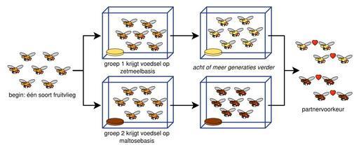 | Keywords: Drosophila speciation experiment NL.svg  speciation in the fruit fly Drosophila pseudoobscura conducted by Diane Dodd A single population of flies was divided into two with one of the populations fed with starch-based food and the other with maltose-based food After the populations had diverged over many generations the groups were again mixed; it was observed that the flies continued to prefer mating with others from the same original population Edited in Inkscape by User Fastfission based on versions by User BenB4 Image Speciation experiment svg from Ilmari Karonen's Image Drosophila speciation svg based on http //evolution berkeley edu/evolibrary/images/evo/drosophila_experiment gif from http //evolution berkeley edu/evolibrary/article/0_0_0/evo_45 Note eight or more generations pass is not found in the original image but is cited in speciation from Dodd D M B 1989 Reproductive isolation as a consequence of adaptive divergence in Drosophila pseudoobscura Evolution 43 1308 “1311 Own Woudloper 2009-01 Created with Inkscape Speciation Drosophila pseudoobscura SVG evolution |